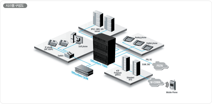 Digital phone 및 Analog phone, VoIP gateway의 지원을 통해 기존 시스템에서 IPT로의 자연스러운 Migration path를 제공하는