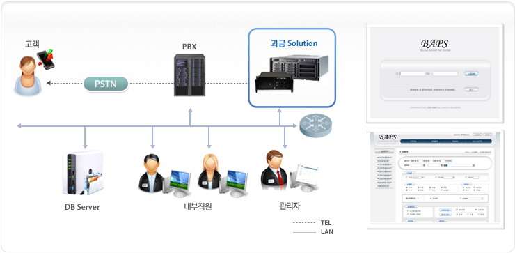 - 착신통화, 내선간 통화, 발신통화 등의 관리기능을 제공
